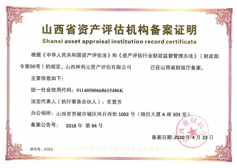 資產(chǎn)評估備案證明