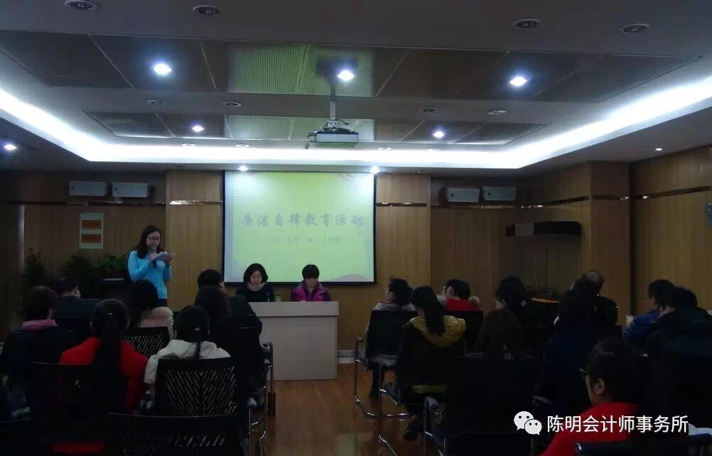 首先董事長陳雪琴做重要發(fā)言,她指出:我們作為中介機(jī)構(gòu)要站在第三方的立場客觀公正的出具報(bào)告,讓委托單位放心,“打鐵還需自身硬”是中國一句千古傳誦的名言。鐵之所以硬,是因?yàn)樗?jīng)過了熔爐的冶煉和錘煉。鐵錘之所以能打鐵,是因?yàn)殍F錘本身也有鐵的硬度。由此可見:“治人者必先自治、責(zé)人者必先自責(zé)、成人者必先自成”。 對于我們行業(yè)來說廉潔自律既是我們職業(yè)道德的內(nèi)在要求,所以向大家提出幾點(diǎn)希望和要求:希望大家進(jìn)一步提高廉潔自律意識和遵紀(jì)守法的意識;公司要完善管理和監(jiān)督機(jī)制;樹立正確的工作態(tài)度,努力做好本職工作。
